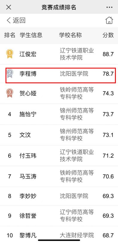 近日,第四届“外教社·词达人杯”全国大学生英语词汇能力大赛——辽宁省赛圆满结束。我校23级病理与病理生理学专业研究生谢涵以全省第一名的成绩获研究生组特等奖,22级医学影像技术班2班李程博以全省第二名的成绩获高职高专非英语类专业组特等奖,20级临床6班颜骥行以全省第五名的成绩获本科非英语类专业组特等奖。值此75周年校庆之际,再创我校大学生英语词汇类竞赛最好成绩。