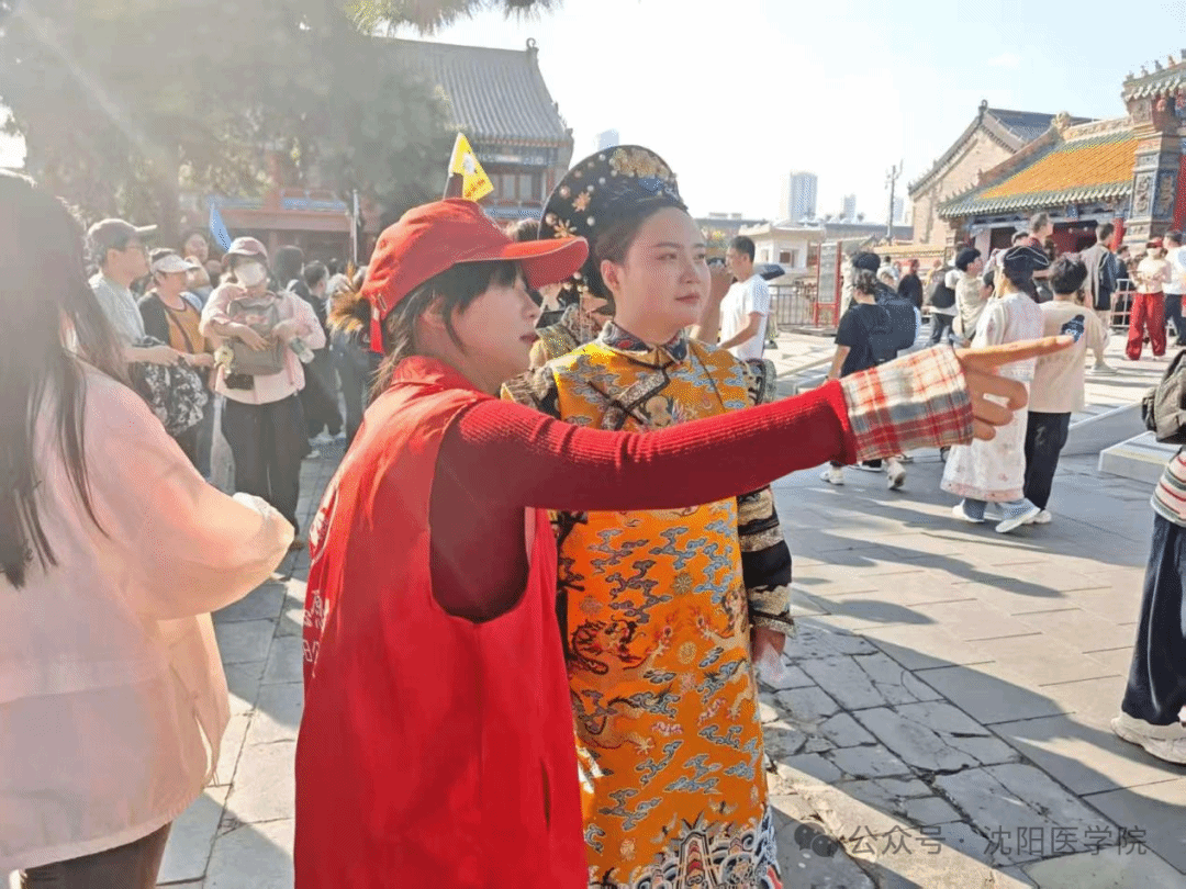 国庆中秋“双节”期间,在沈阳热门景点如织人潮中,跃动着这样一抹亮丽的颜色——那便是沈医青年身上的“志愿红”。为助力沈阳文旅事业发展,引导沈医青年在实践中践行“博学洁行 厚德济世”校训,“双节”期间,校团委组建8支由22-25级400余名学生组成的志愿者团队,深入沈阳故宫博物院、张学良旧居等景点开展志愿服务,以热情专业的行动为游客的文化之旅保驾护航,让青春风采在志愿服务中绽放。