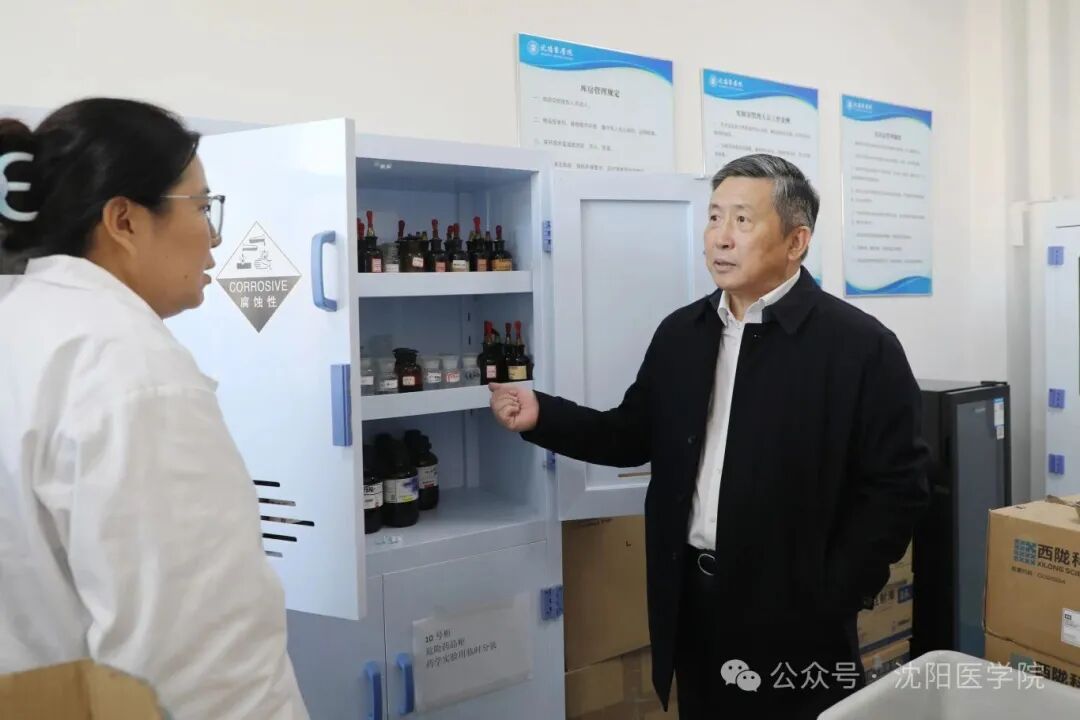 在第一教学楼7楼仓库,任甫重点关注无人管理问题,明确要求划定责任主体,杜绝校园内出现安全管理盲区;检查图书馆时,他不仅核查阅览区、藏书区消防器材配置情况,还特别提出要加强校园闲置区域常态化巡查与管理,严防杂物堆积引发火灾等安全事故。在基础医学院、公共卫生学院、附属卫生学校、实验动物中心、护理学院、口腔医学院、档案室、大学生心理健康中心、公共外国语学院等单位,任甫深入办公室、教研室、实验室等处检查,强调全体教职员工必须提高安全责任意识,严禁违规用电;针对实验室安全,要强化管理,实验仪器设备、压力容器、实验试剂需明确专人负责,规范使用、储存及登记流程,同时持续做好消防设施设备巡视巡查,加强重点岗位人员安全培训与应急演练;此外,任甫还带队检查了废弃物处理厂、水源地、法医司法鉴定所等关键场所。结合这些场所的设备特性与安全要求,他要求相关单位细化电器管理制度,明确专人定期检查设备,从源头杜绝隐患,落实各环节安全责任。