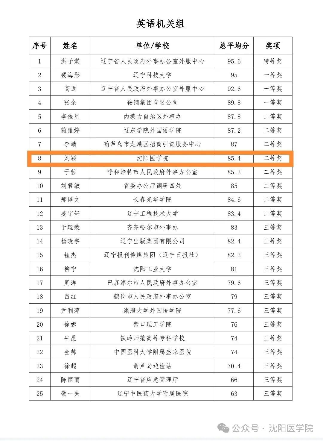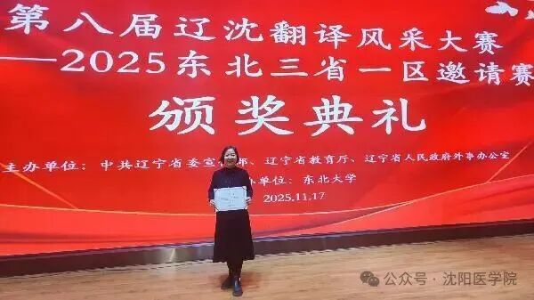 近日,由中共辽宁省委宣传部、辽宁省人民政府外事办公室、辽宁省教育厅联合举办的第八届辽沈翻译风采大赛——2025东北三省一区邀请赛在东北大学圆满落幕。我校公共外国语学院刘颖荣获机关英语组二等奖。