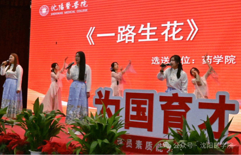 比赛结束后,医学信息工程学院、药学院、第一临床医学院、护理学院、康复学院以及相关职能部门师生联袂登台表演展示风采。
