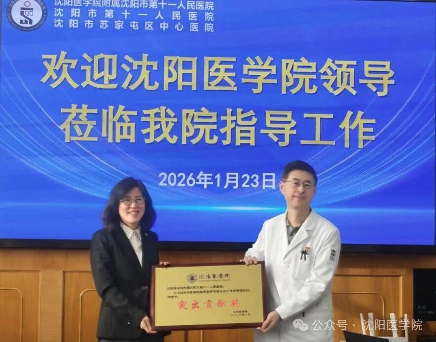 在附属沈阳市第十一人民医院,党委书记、院长高松及领导班子成员、相关科室负责人参加座谈。高松表示,医院将持续完善教学管理体系,提升教学质量,深化校院交流合作,推动医教研深度融合,健全全程临床教学管理体系。作为学校重要临床教学基地,附属沈阳市第十一人民医院在我校接受教育部第二轮临床医学专业认证中,在认证材料筹备、教学查房示范、学生临床能力评估等关键环节提供了全方位支持,得到认证专家高度认可。为表彰医院的突出贡献,学校特授予医院“突出贡献奖”。