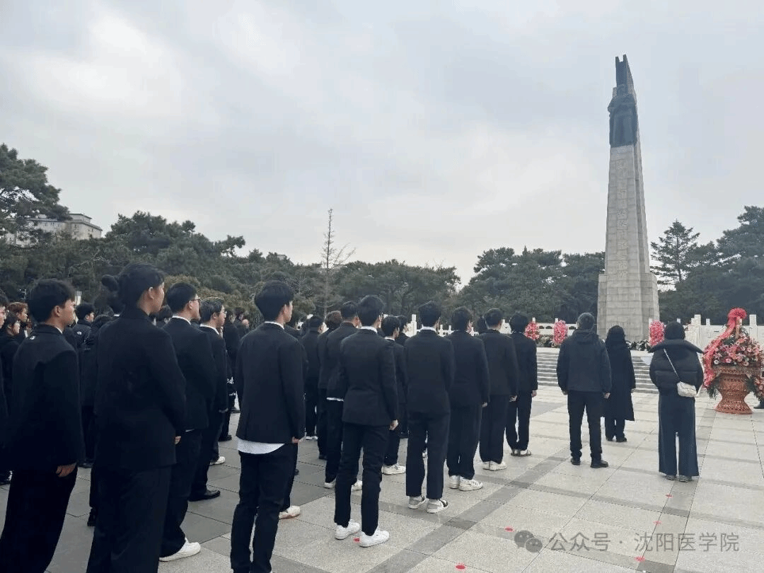 仪式现场松柏凝翠,庄严肃穆。我校师生身着素色服装,列队肃立,怀着崇敬之心全程参与奏唱国歌、集体默哀、敬献花篮与鲜花、瞻仰英名墙等环节。大家神情凝重、举止庄重,在静默中追思先烈们保家卫国、浴血奋战的峥嵘岁月,深刻感悟革命先辈无私奉献、舍生取义的崇高精神,展现出沈医师生优良的精神风貌与严明纪律。