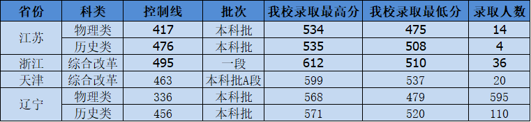 我校今年第一次招收历史类考生,生源质量较高,历史类录取最高分为571分,最低分为520分,超过历史类本科控制线64分(历史类本科控制线456分)。其中: