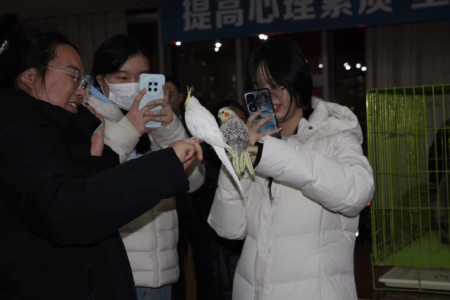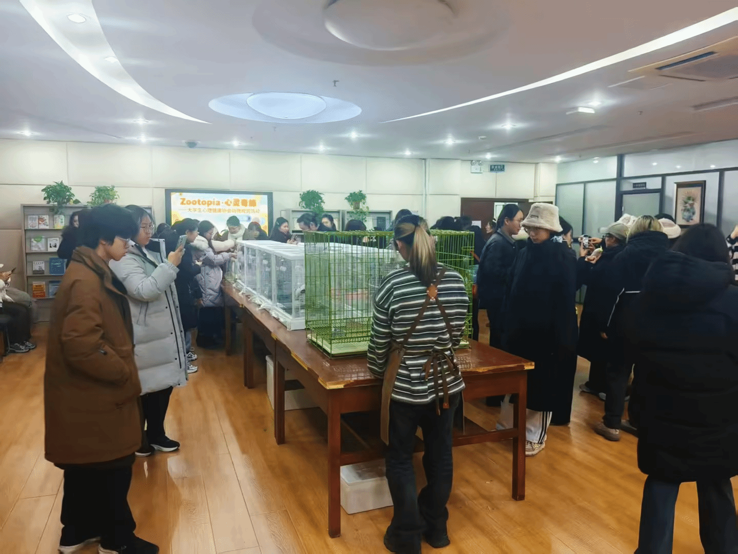 同学们在工作人员引导下,分批进场与各类动物近距离接触。通过观察、触摸与照料体验,不仅在互动中感受生命之美,也在轻松的氛围中逐渐放松心情、缓解焦虑。活动现场还设置了情绪分享环节,鼓励同学们结合动物互动体验,表达近期情绪状态,不少同学表示“触摸小动物的时候,压力好像也跟着被抚平了”“看到它们那么安静,自己也不自觉地平静来”。