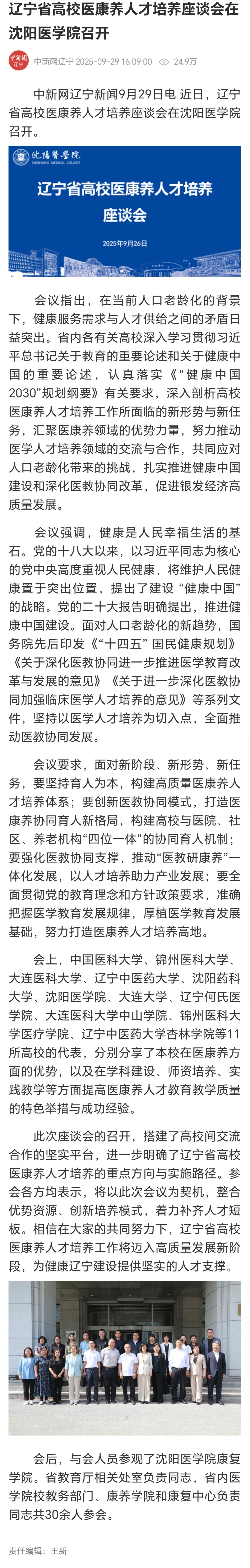 辽宁省高校医康养人才培养座谈会在沈阳医学院召开